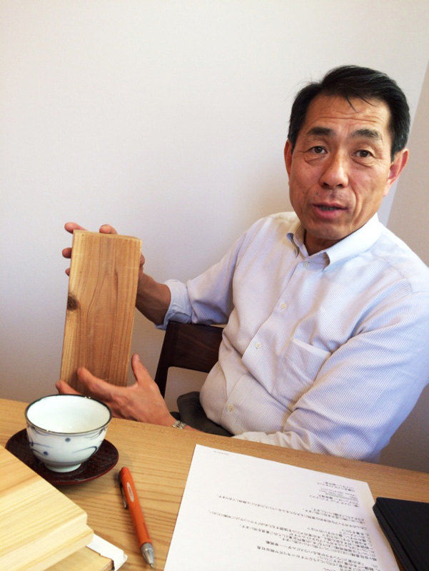 また、材木屋という立場からお話しすると、日本の林業は伐採期を迎えている木がごまんとあるのでどんどん使っていかなければなりません。ご存知のように、老木は二酸化炭素を吸っても酸素を多く吐き出すことはできませんから、古い木を切って植え替えをしていかないと空気の清浄化にもならないのです。いまではその7割ちかくが伐採期を迎えていると言われていますが、まだまだ日本国内で木は使われていないのが現状です。世界に冠たる森林国ですから、木を使うことで日本の林業を守っていく。お客様は建築業のキリガヤという見方があろうかと思いますが、根っこにはまだ材木屋のプライド(矜持)もあるのですよ(笑)。