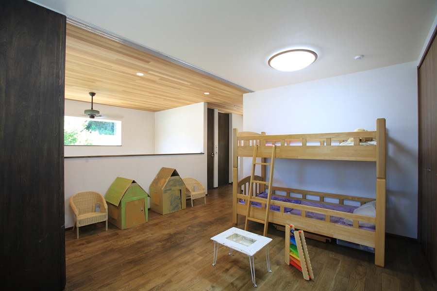 2階の子供部屋は解放感いっぱいで、リビングからも上階の