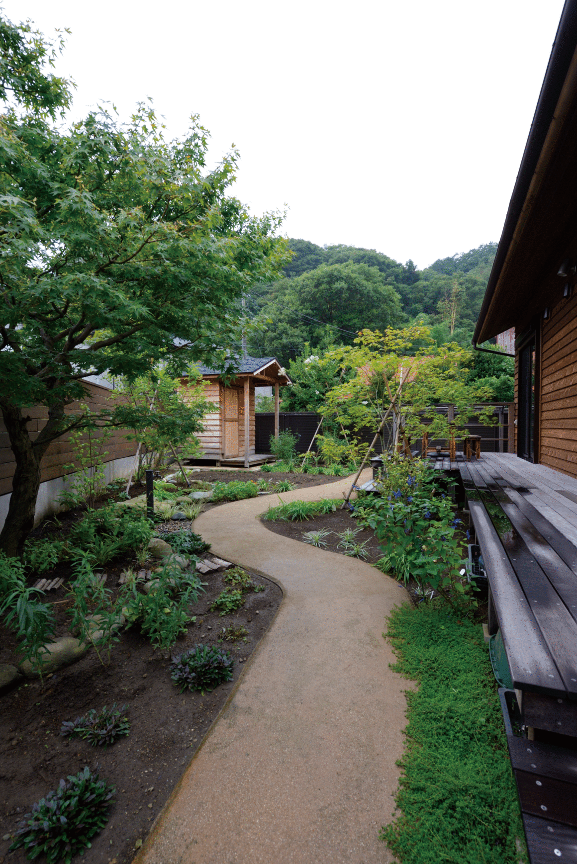 建物横から裏庭へ曲がりくねった道は、「奥の細道」と呼んで親しんでいるそう