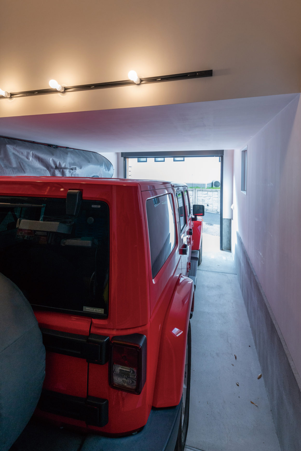 大型の4輪駆動のSUVが納められる大きなインナーガレージをもつK邸。海に近いからこそレッドシダーの外壁はファサード、性能ともに最もふさわしい素材だろう