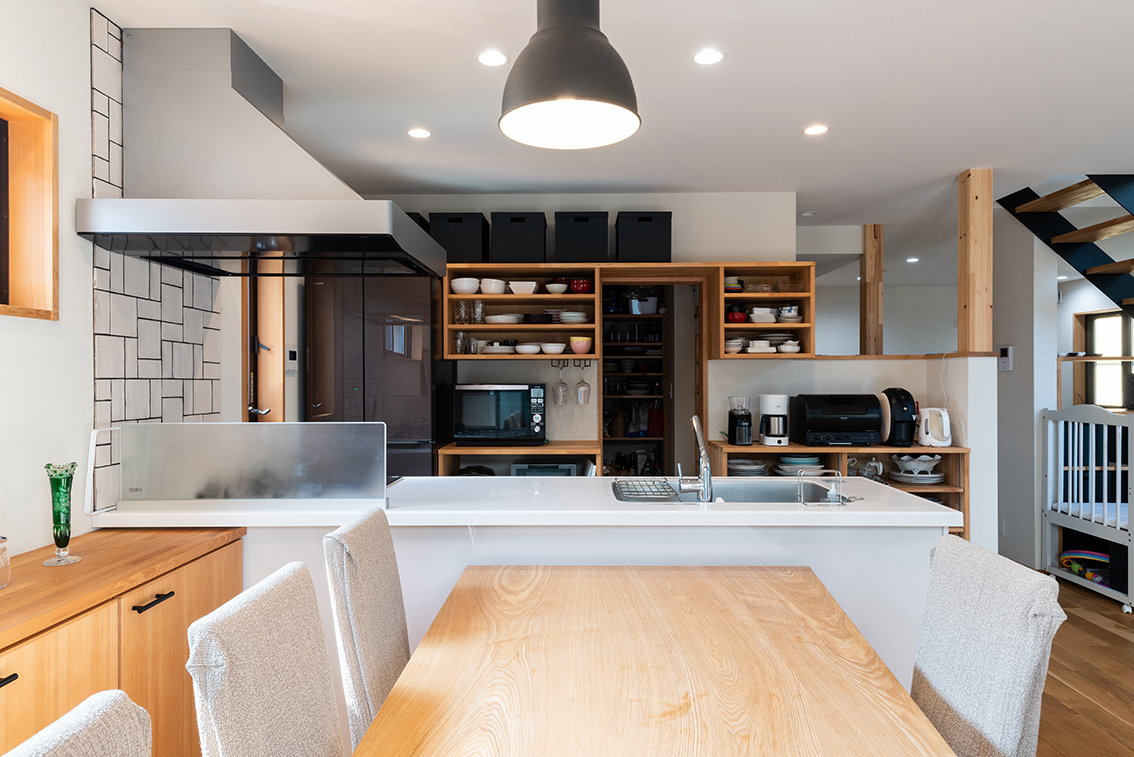 料理上手な女性にとって、使いやすさとオシャレ感はどちらも譲れないもの。そこで、毎日使う食器や家電を前面に見せるキッチンにはパントリーが欠かせません。