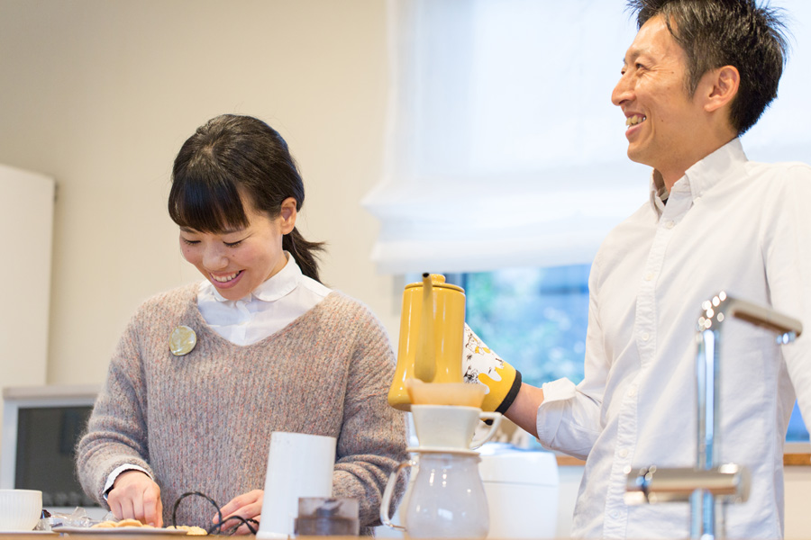 まだ、おふたりがアパート暮らしのころ、鎌倉駅から部屋までの途中、気になる建築中の家があった。外壁にレッドシダーを纏った家、それが建築中のsolasioの設計施工の家だったのです。土地情報と工務店との出会いはこのように、いつも奇跡的なものかもしれません。