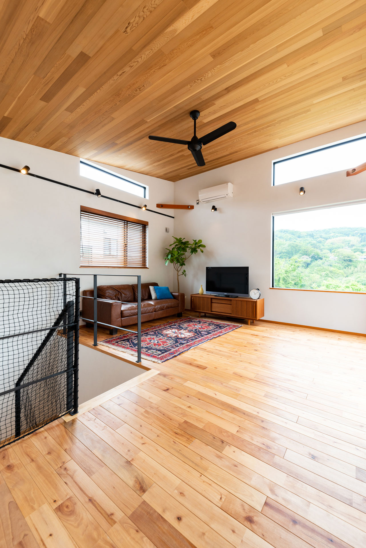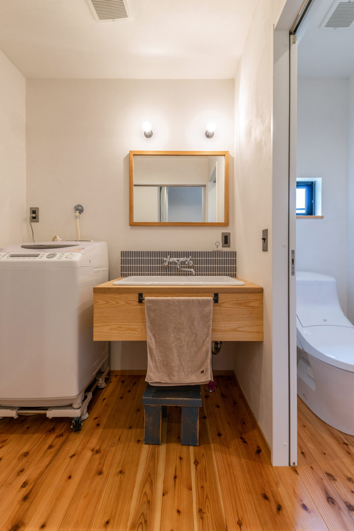 ❽家族みんなが裸足で暮らすような自然素材の家。そんなコンセプトで随所にふんだんに木材を使っている