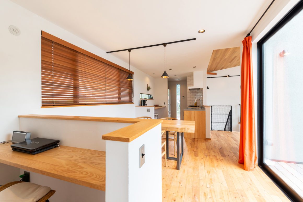 ❺ダイニングの奥に確保した書斎スペース。パソコン作業やお子さまの勉強スペースとしても有効です