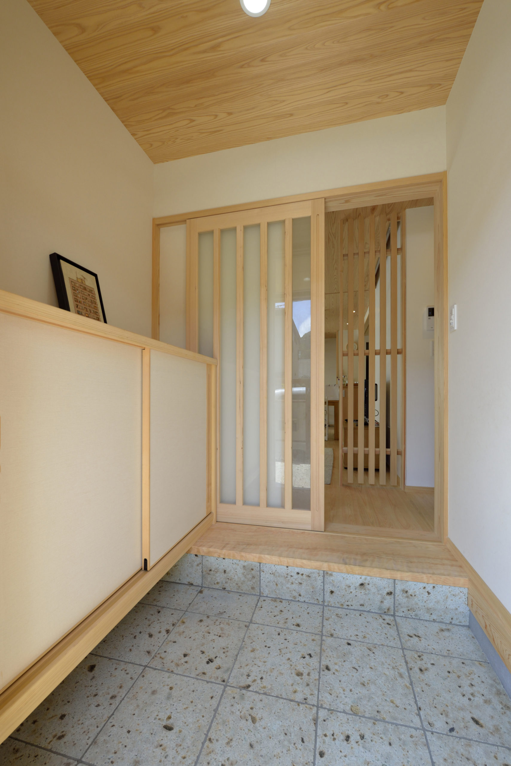 桧羽目板張り、ボーダータイル貼り