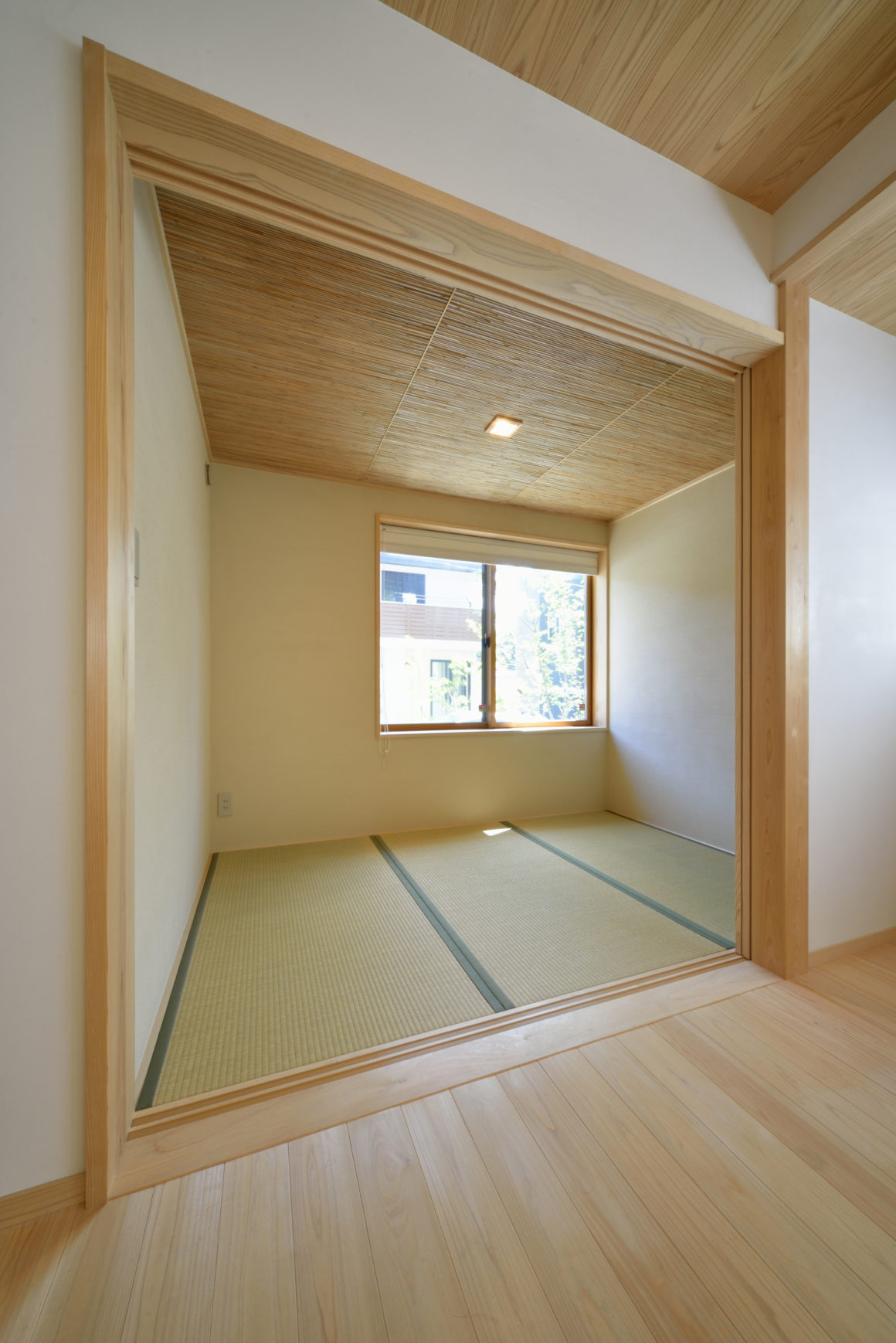 天井/杉羽目板張り、環境壁紙貼り、サツマ葦合板張り