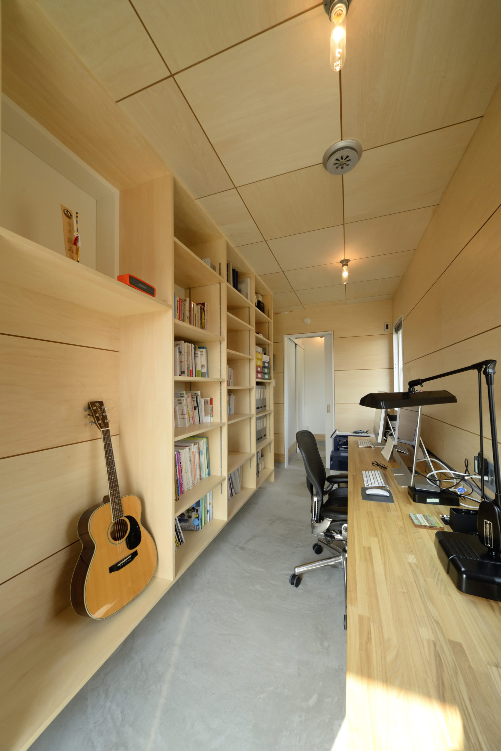自宅オフィス、またはアトリエでは、家族と過ごす空間と遮断した「仕事場」をつくるために土間を利用します。あえて土足で過ごすことで仕事モードに