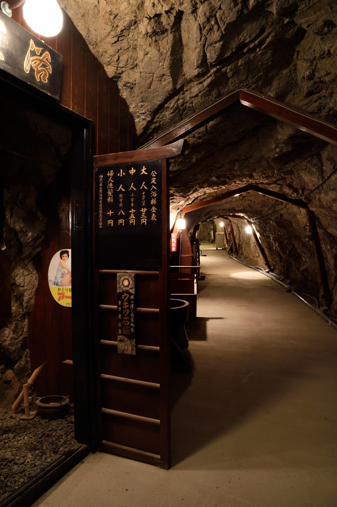 山のふもとの重い鉄の扉を開いてこの洞窟にやってきた。写真の奥の道を下ってきたところに銭湯がある。フェイクではない、ちゃんと入浴できるお風呂だが、「大人十三円」とはいかないけれどね