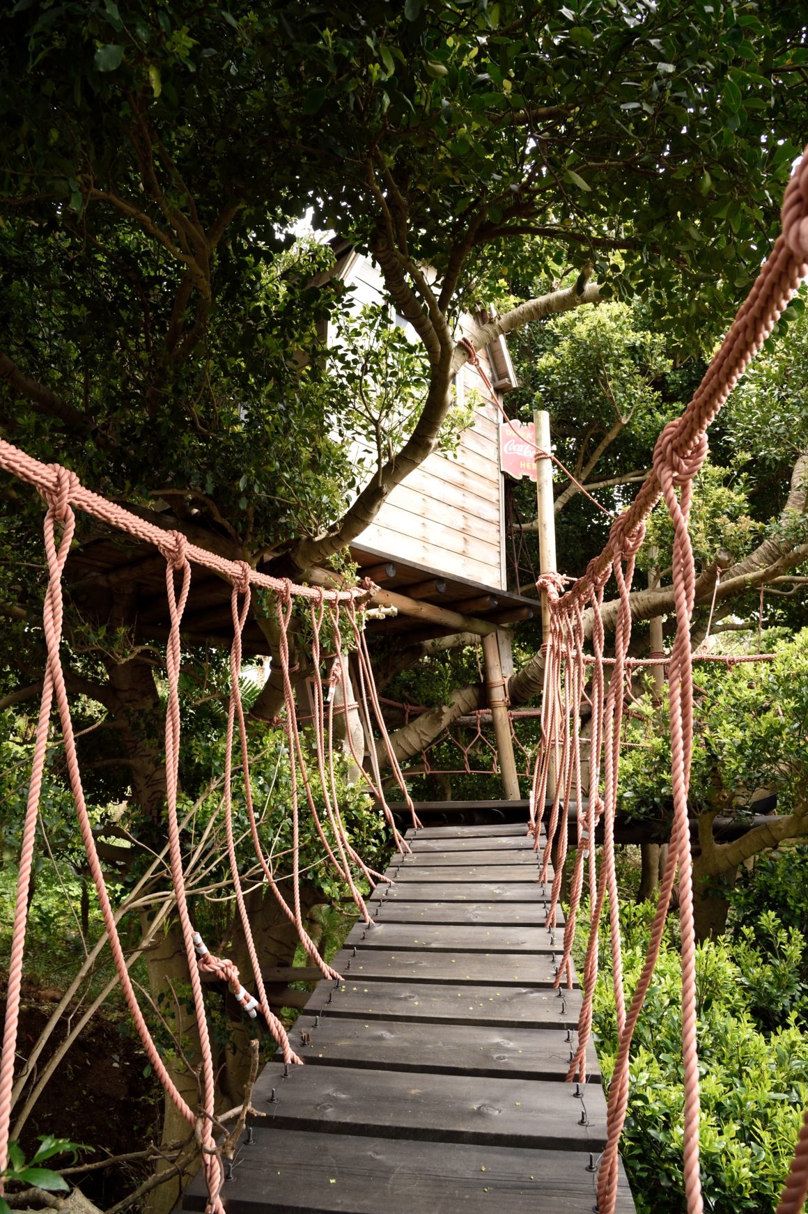 敷地のほぼ真ん中に作られたツリーハウス。何本かの吊橋で渡ることができる