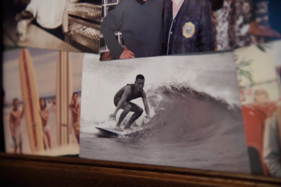 車好きが高じて「自然の流れ」のようにワーゲンの事業は成功を収めた。一方で1950年代から小森さんが没頭したもう一つの遊びがサーフィンだった。サーフレジェンド、テッド阿出川さんを師と仰ぎ、小室マーボー正則と海で共にした。この家の写真盾にもグーフィーフットのライディングが白黒で飾られている。