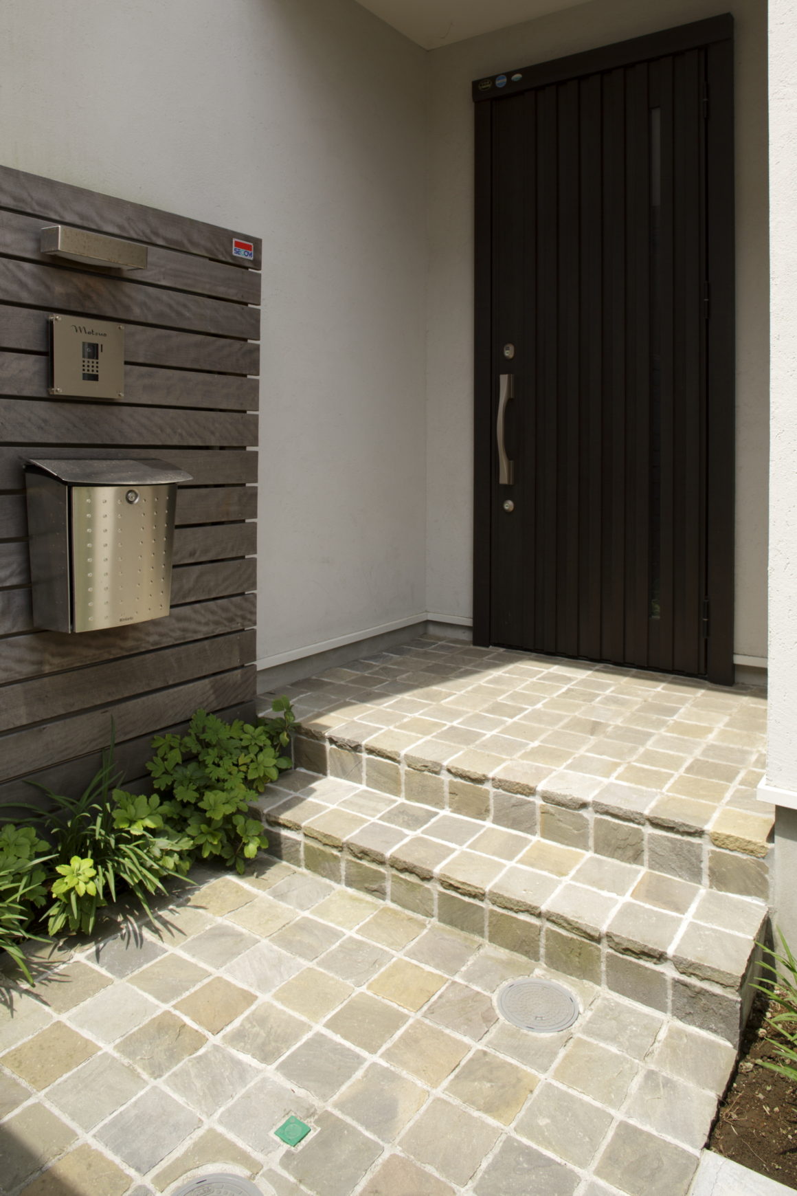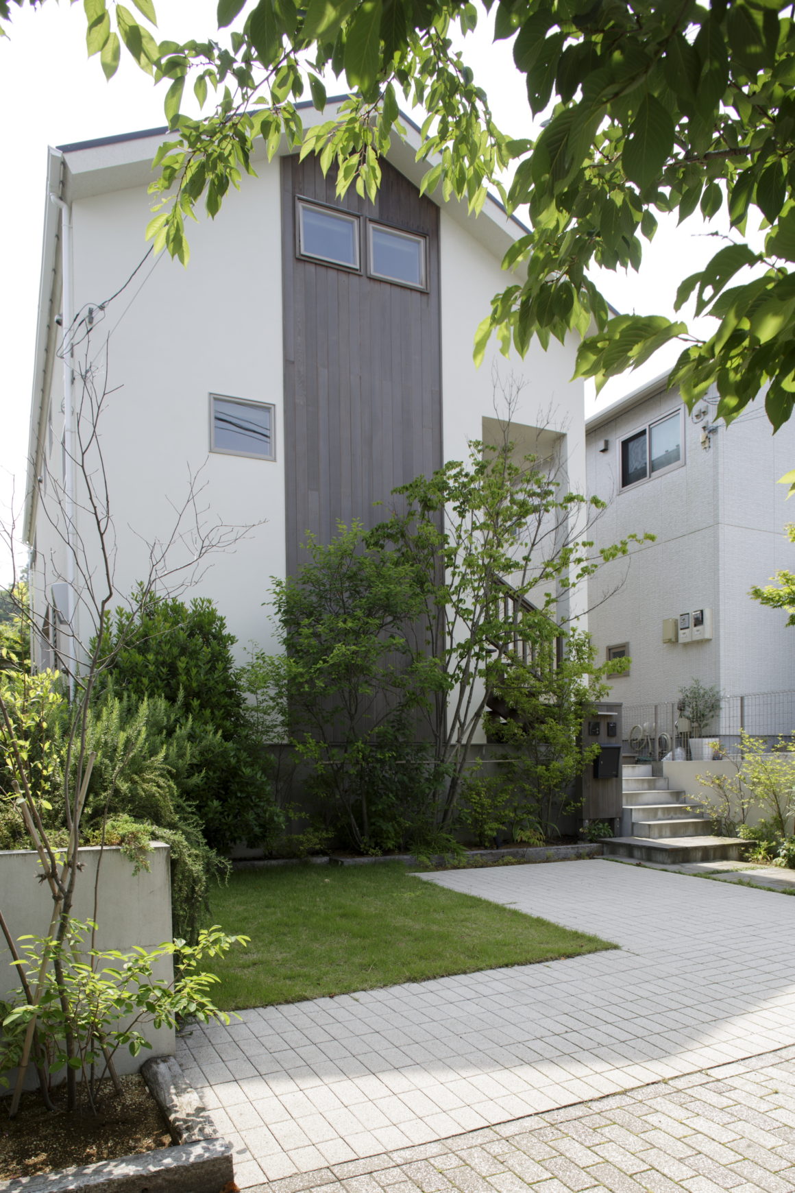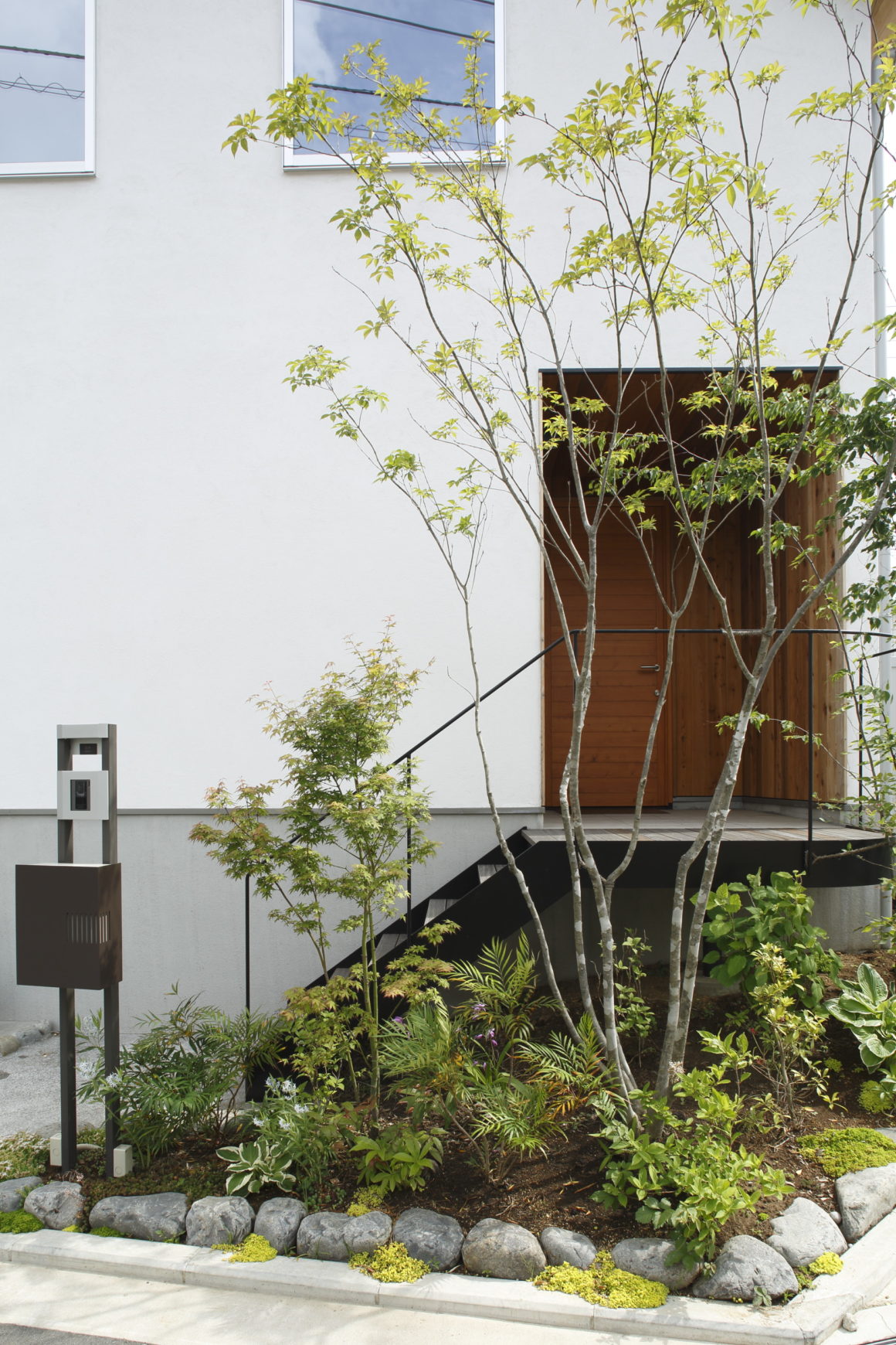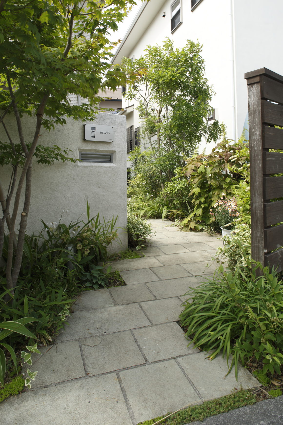 道路から一歩入ればそこはもう我が家、アプローチに配された植物に季節を感じながら玄関に至ります。