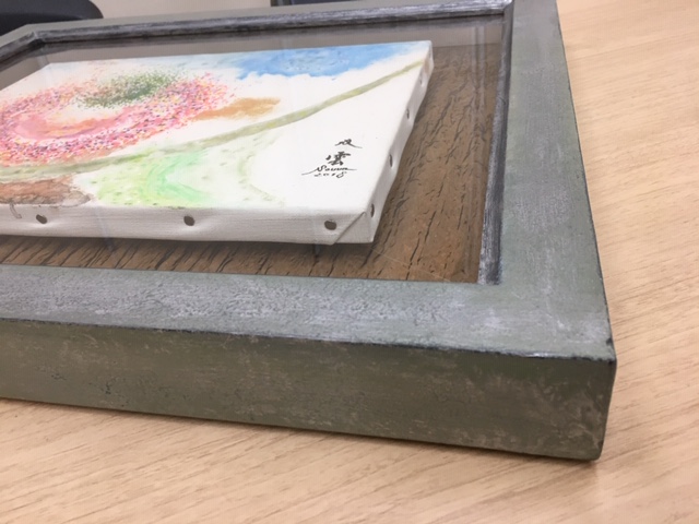 ●アトリエ トロワピエスのオーダーメイド額装はフレーム&マット(作品とガラスの間に挟む厚紙)を作品とトータルコーディネートして仕上げます。