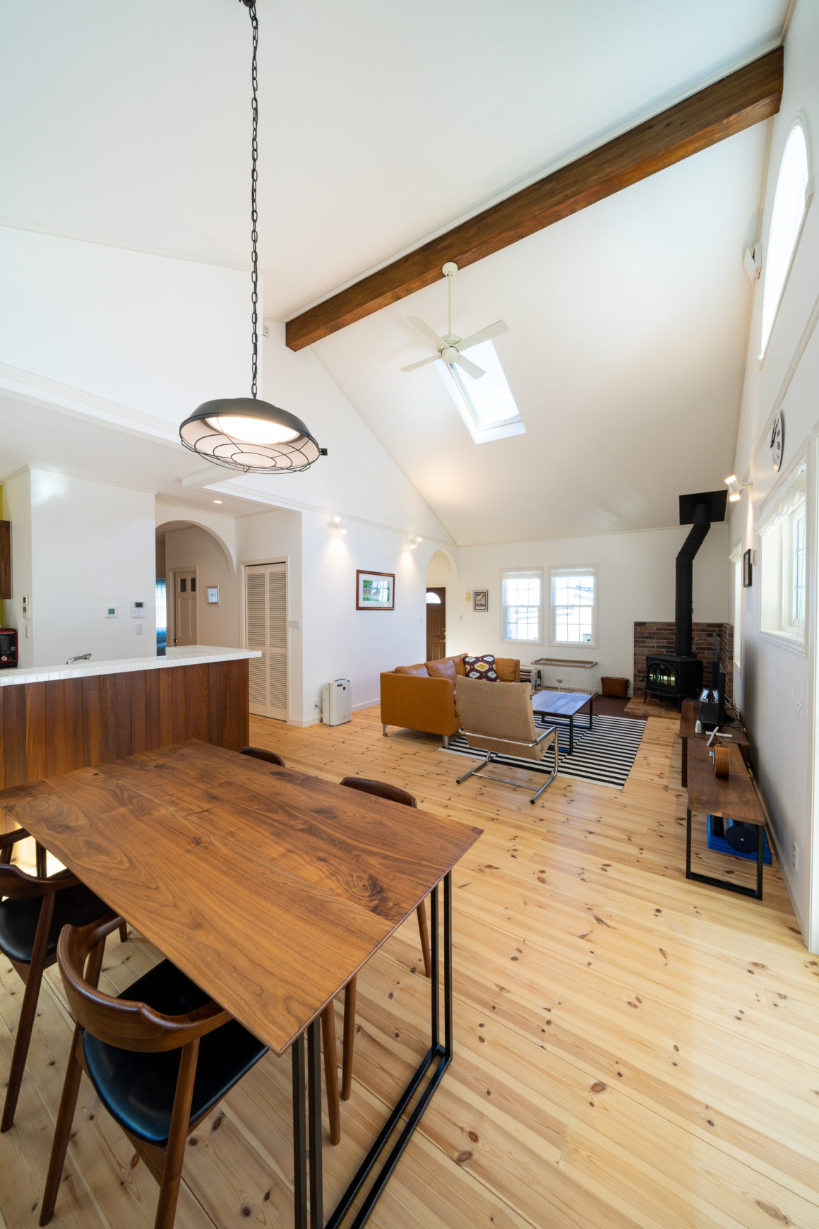 大きな勾配天井のリビングに、午後にふさわしいジャズが流れる。