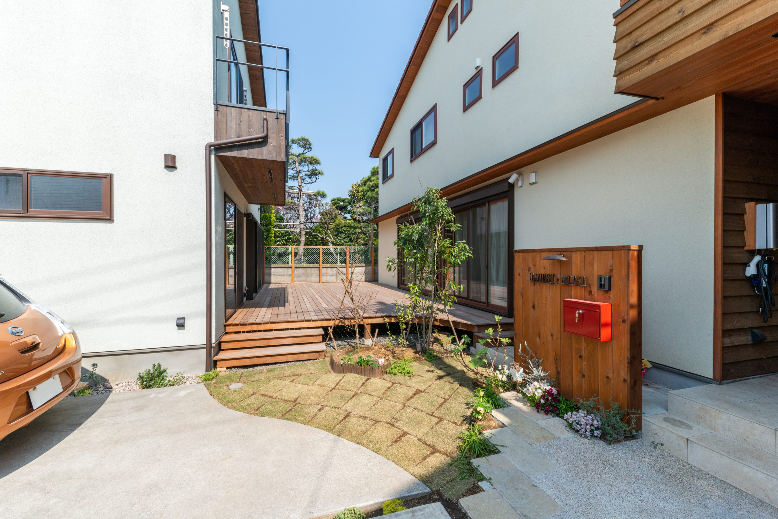 仲のいい姉妹が隣接する住宅を建てる。二つのご家族のつながりをウッドデッキが担う。ちょっと素敵な関係です。