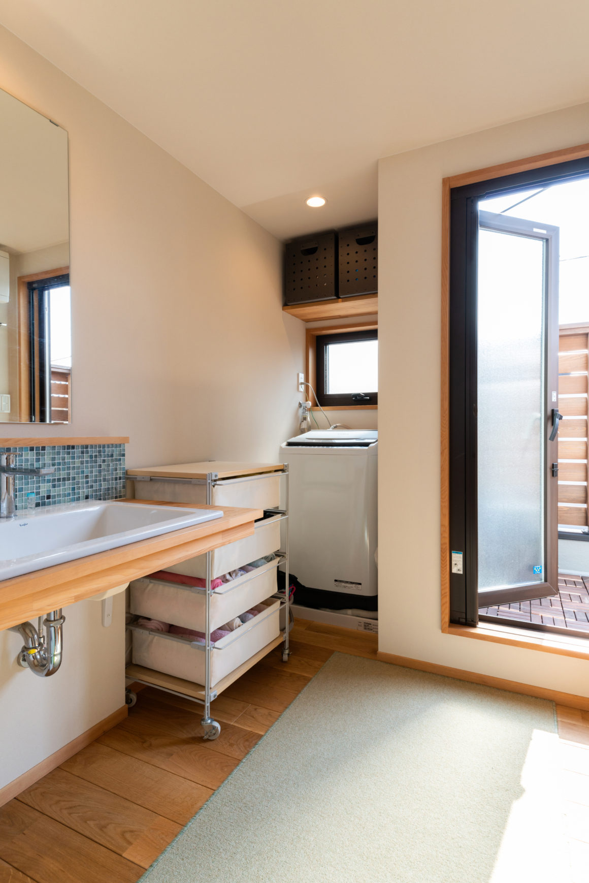 大きな吹き抜けを配しているリビングはとても自由な空間でもあり、その先で繋がるフラットなウッドデッキを姉妹2家族が共有することで、さらに贅沢なひろがりを演出しているのです。気持ち良い暖かな季節には、互いの家族がビールを持ち出して楽しい時間も共有できそう。