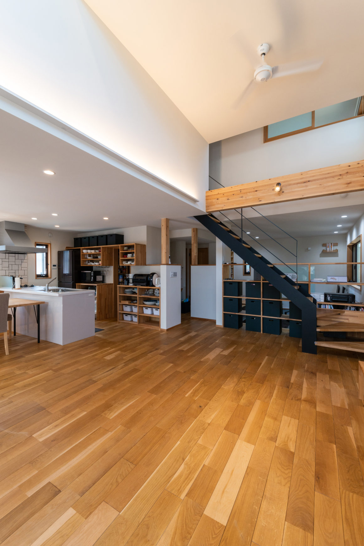 室内は木をふんだんに使用し、大きな空間を作り出せるSE構法を採用しています。「木とともに暮らす」ことを標榜するキリガヤの人気のラインナップでもあります。