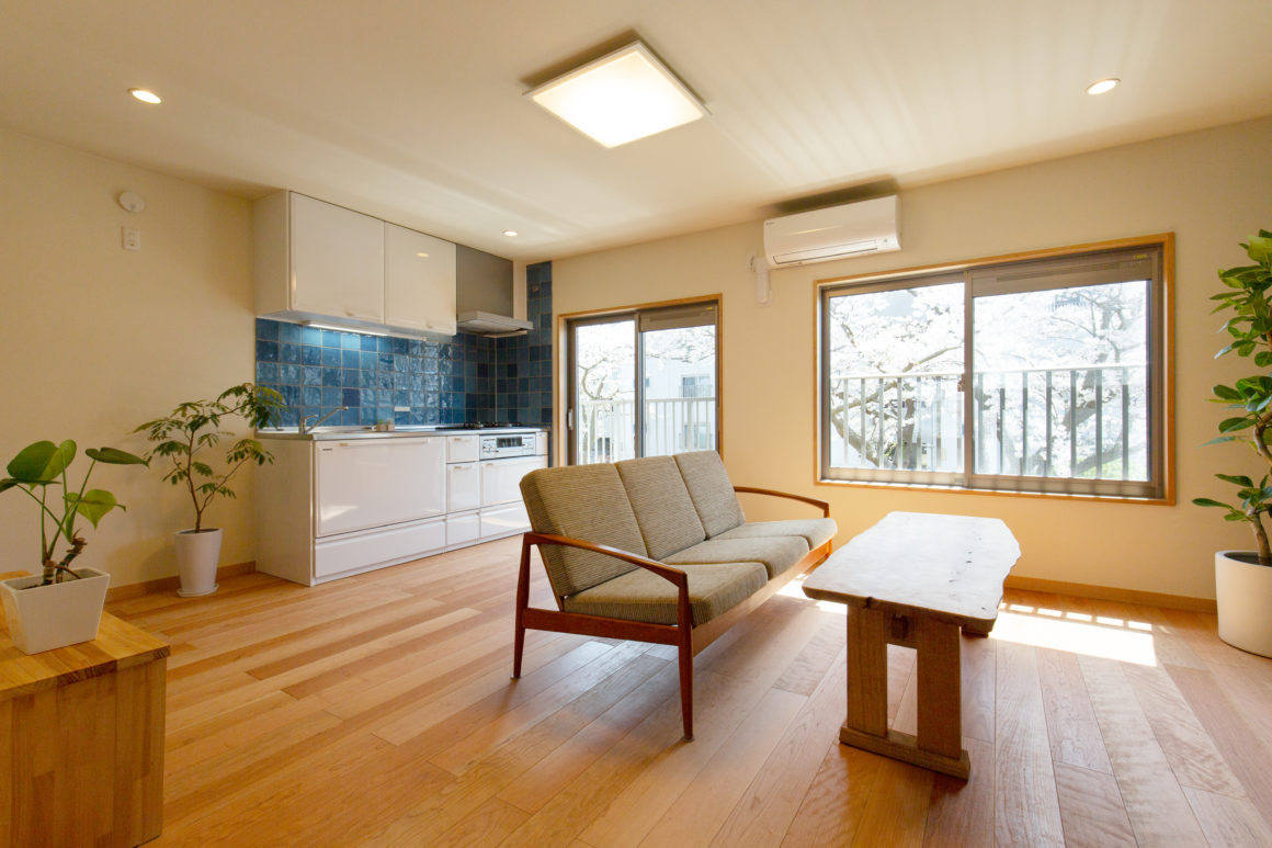 新築同様の水回りと表情豊かな無垢のフローリング。防音等級も取得して、壁も天井も下地から作り直しています。寒さ対策の断熱材もしっかり充填。