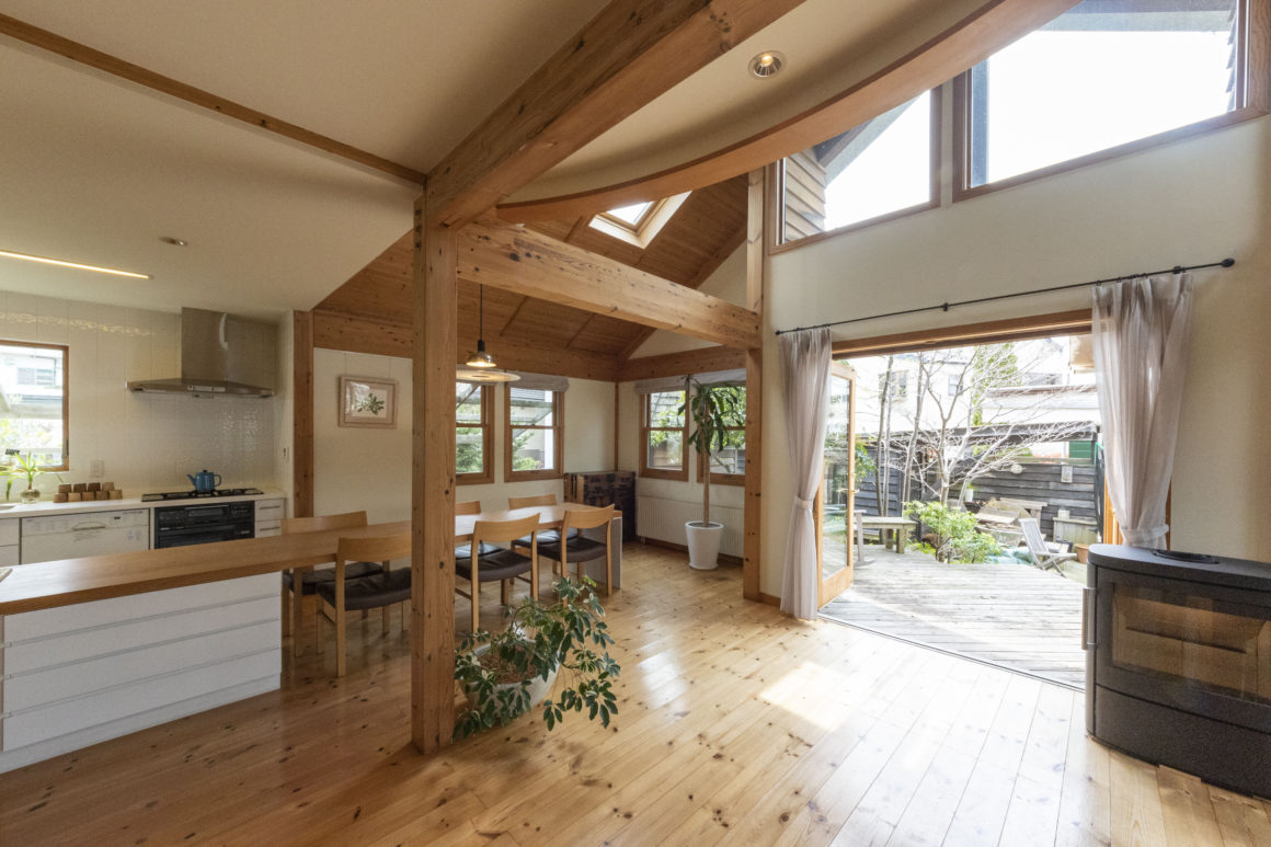 海⾵や⽊の⾹り、⿃のさえずりなどを五感で堪能する贅沢。そのための場所として不可⽋なのがテラス。また薪ストーブは暖房としてだけでなく安息のためにも必須。