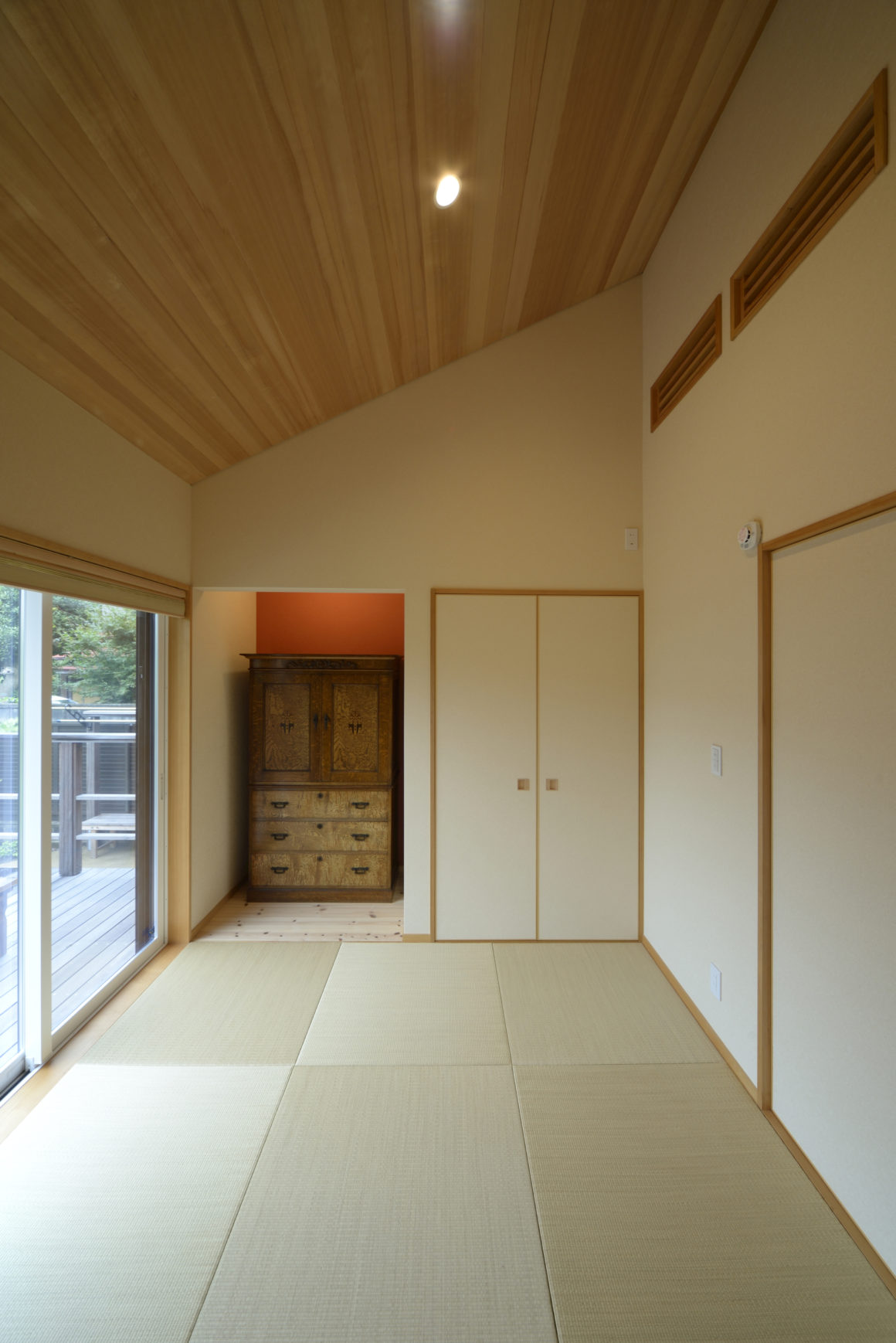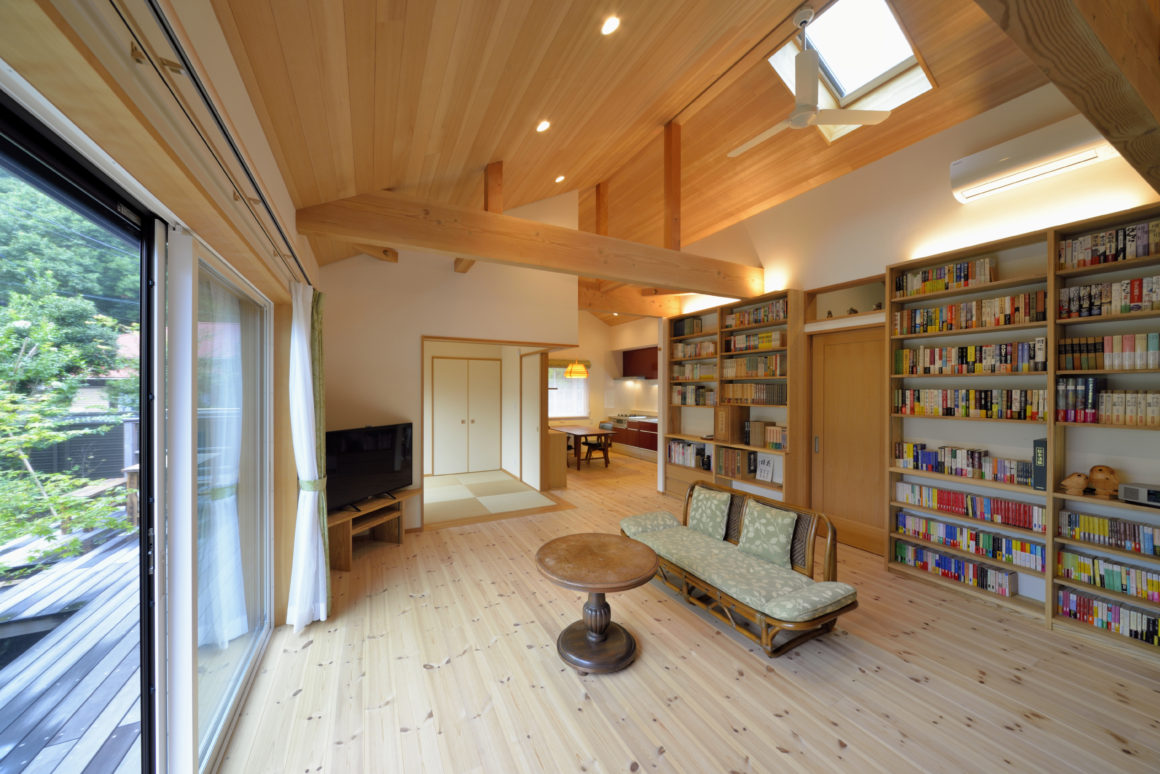 このお宅の魅力はなんと言っても、庭や畑と共に生活があるがゆえ、木々や作物の様子を常に見ることができ、昼間日差しが強ければ、畑仕事は一休み、雨が降れば本を読んで過ごす「晴耕雨読」の理想的な暮らし。この空間には豊かな時間が流れています。そんな素敵な暮らしの実現をお手伝いができたことは、私たちにもこの上ない喜びです。秋の収穫が楽しみですね。