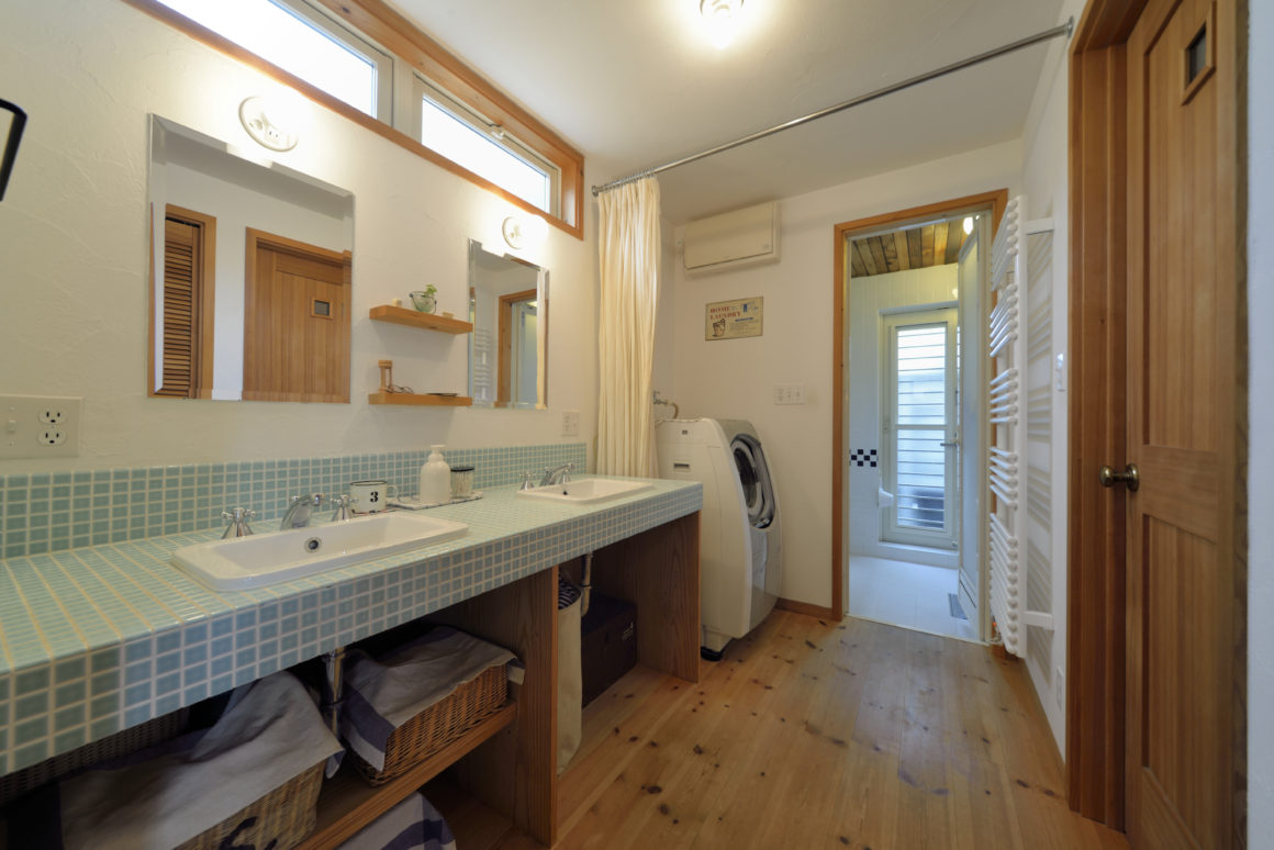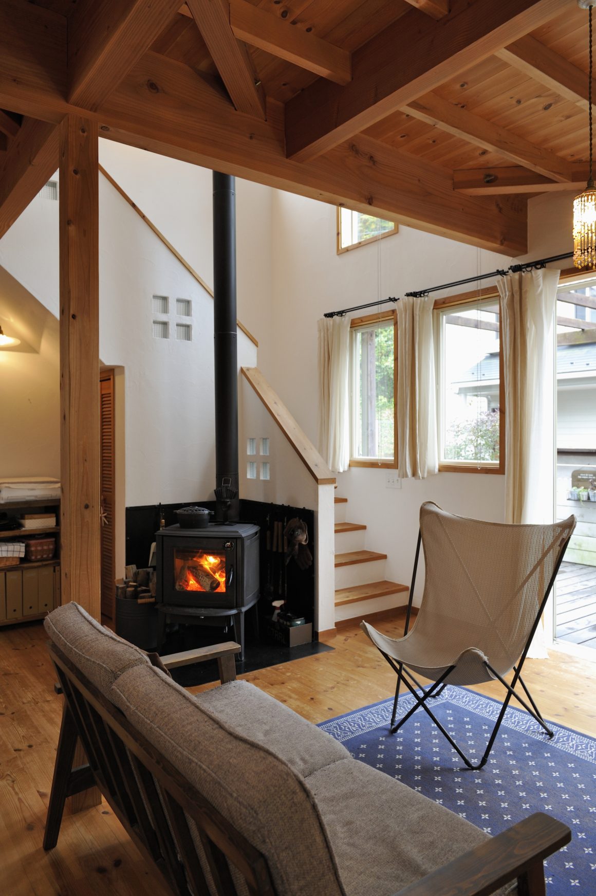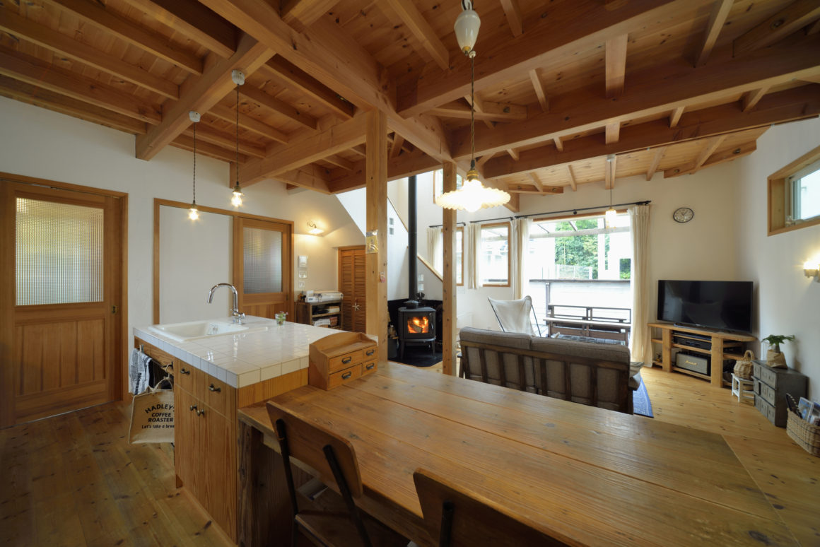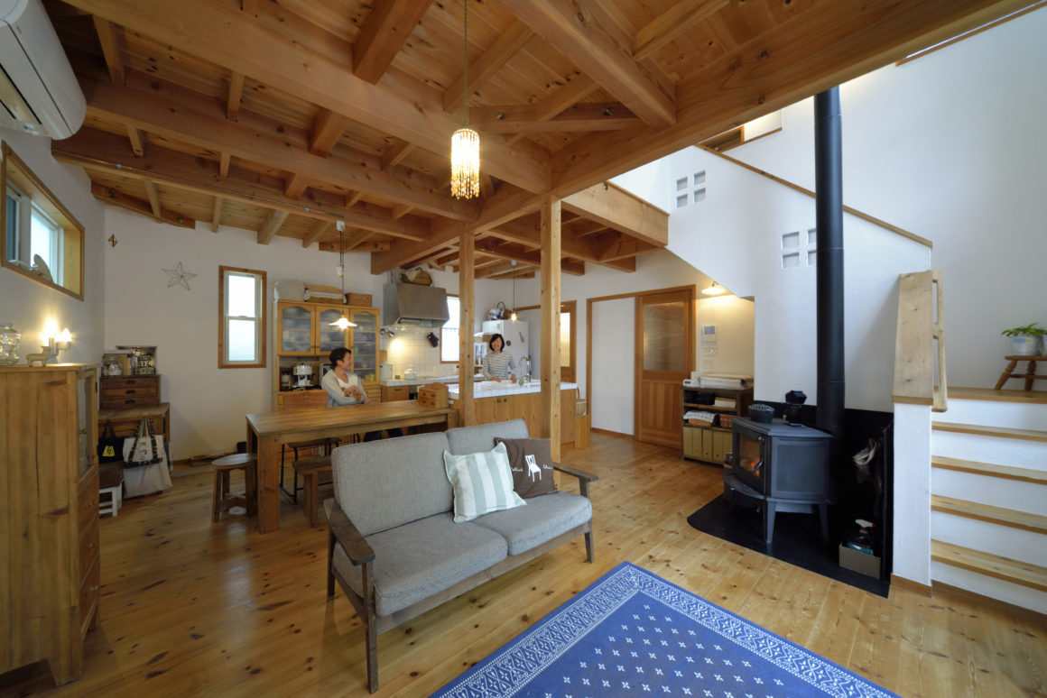 ビルダーズノート◎葉山の美しい緑に囲まれたすばらしいロケーションに建つこのお家は、都市部から移ってこられたK様ご家族が自然と共に和やかに暮らせる空間づくりにこだわり計画しました。1階LDKの南側には大きめに吹き抜けをつくり、この吹き抜けに面した外壁には窓を多く設け、降り注ぐ太陽の日差しを取り入れ、山の緑をたのしむことも出来ます。K様ご家族は、積極的に家づくりに参加され、内部壁の漆喰塗りや、木部のオイル塗りなどDIY作業も楽しんだ家づくりとなりました。