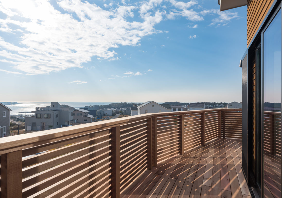 正⾯に相模湾、右⼿は富⼠山まで⾒渡せるという「最⾼のロケーション」をどう活かすかを最優先に、また周囲に家が建ってもこの眺望が楽しめるよう緻密な計算と⻑年の経験を活かした施工例をご覧いただきましょう。