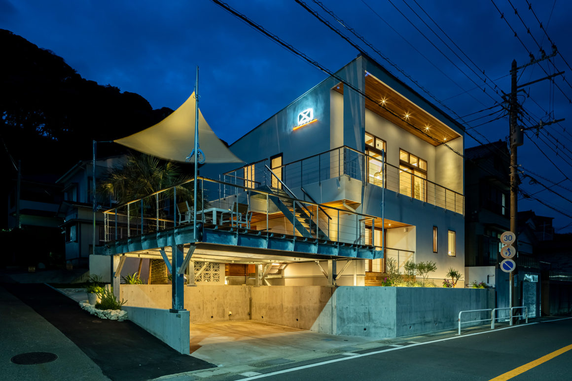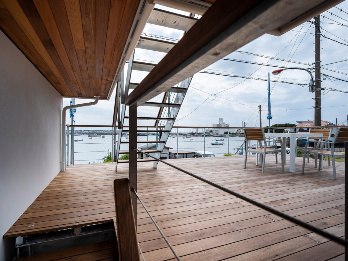 ヨットのキャビンをそのまま陸揚げしたようなデザインの佇まいがこの街によく似合う。ものづくりが好きな海の男の大きな作品だ。