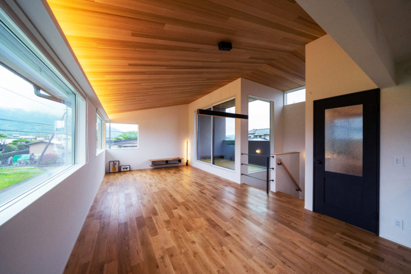 このリビングは神奈川県開成町で竣工したKIBARIの新築住宅です。部屋の四隅からみた床と天井の無垢の木の美しさには改めて息を飲みますね。